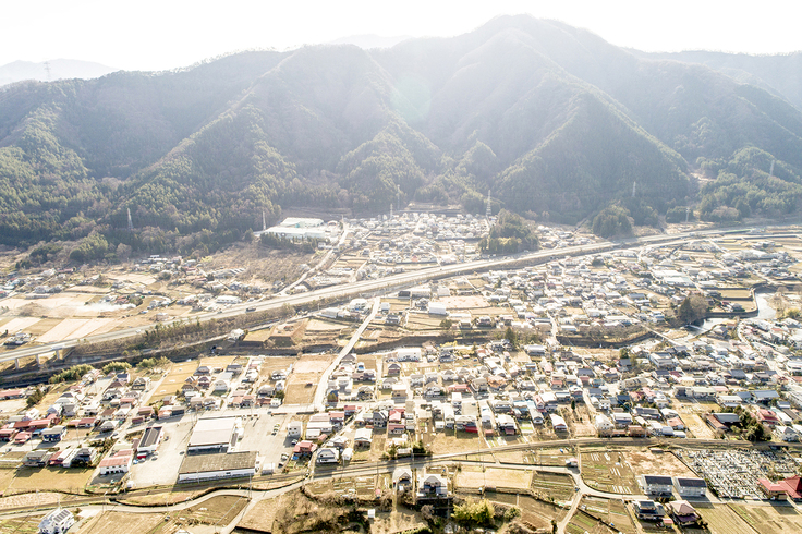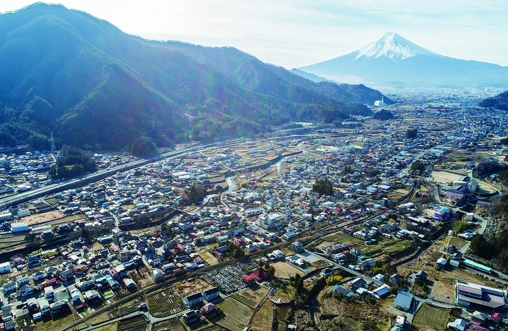 西桂町の風景(山梨県南都留郡西桂町は人口約4000人の小さな町です。三ツ峠と倉見山に挟まれた地形で、その中央に桂川が流れています。織物とミネラルウォーターの町として知られ、水道水も富士山の伏流水を汲み上げたものを使用しています。)