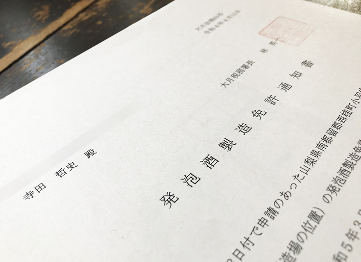 醸造スペースの工事や醸造設備の導入、免許の申請時に必要な「取引承諾書」など、町の方々に助けられながら少しずつ進めてきた申請手続き。計画がスタートしてから2年半が経った頃、ようやく製造免許を取得することができました。