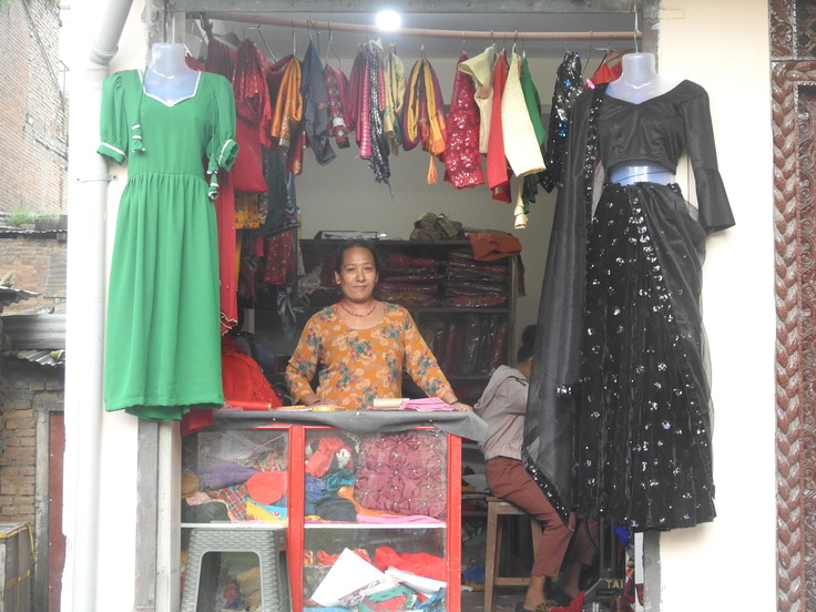 1つ目のきっかけはテーラー(裁縫屋)を営むバガバティさんとの出会いです。彼女はここネパールのパナウティで長年テーラーを営んでいます。気さくな彼女の人柄もあり、毎日たくさんのお客さんがテーラーを訪れます。私もネパールの民族衣装であるクルタスルワールを仕立ててもらったことがきっかけで知り合いました。彼女は農村での暮らしではなく、技術を身につけて、仕事をすることを望み、都会に移り住み、裁縫のトレーニングを受け、自分のテーラーを開きました。当時は結婚したばかりで、夫婦共々仕事が無く、借金をして、3000ルピーの中古のミシンを買ったそうです。そんな彼女が当時のことを振り返りながら、「ネパールでは裁縫の技術を習得すると、とても役に立つ。だから、学びたいという女性達を応援したい。」この彼女の言葉に私も賛同し、今回のプロジェクトを立ち上げました。