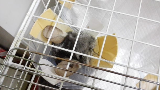 とはいえ、患部の縫合跡は痛々しく、いじってはいけないので、今のところエリザベスカラーをしています。