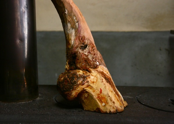 木を削ってゆくと思わぬ発見があります。木の中の方に節があったり、空洞があったり、時には虫の幼虫も顔をだします。ちょっと考えてから決断します。意識はありませんが、このちょっとの時間に木との話し合いがあるのかも知れません。順調に仕事は進みます。木との合意がなされているからです。ね、楽で楽しい仕事でしょ。