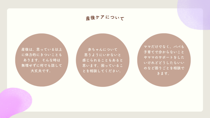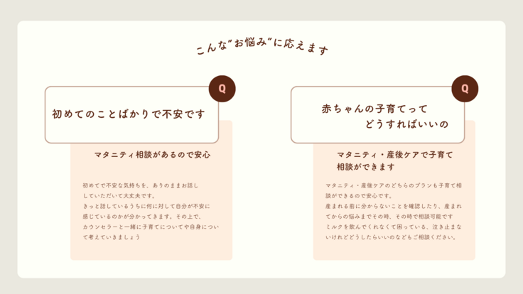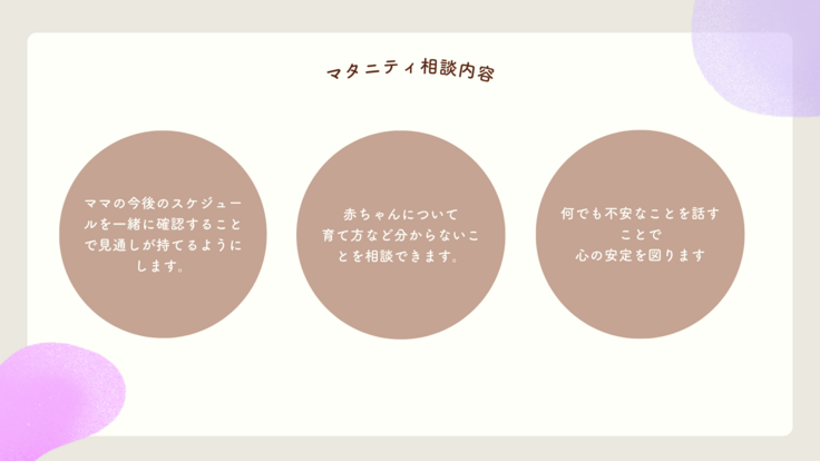 2,マタニティ・産後ケアでは、ママと赤ちゃんのケアサポート事業をすることで、マタニティブルーや産後鬱を未然に防いでいきます。