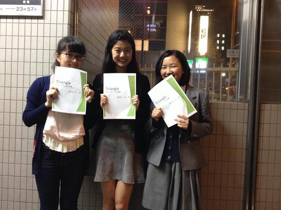 左から実行委員広告部の石川ミラ、実行委員長の徐亜斗香、副実行委員の林苑芳です。