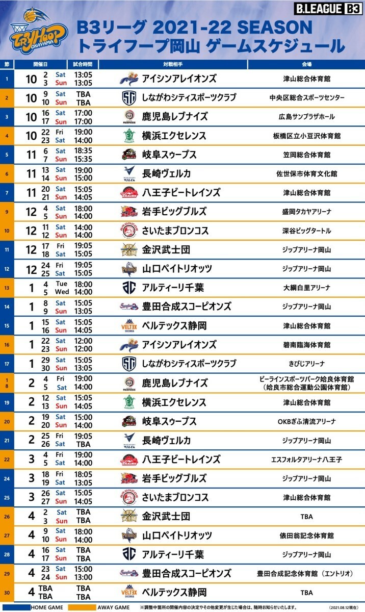 必勝!プロバスケ・トライフープ岡山 B3優勝&B2昇格にご支援を