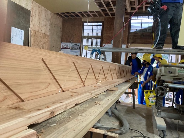 生まれて初めて階段のつくられる所を見ました。思わず、「すごーーい!!」
