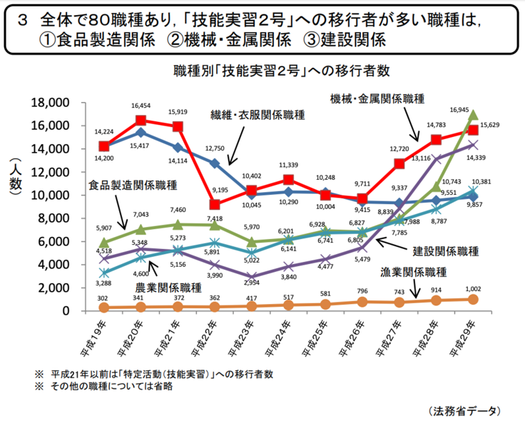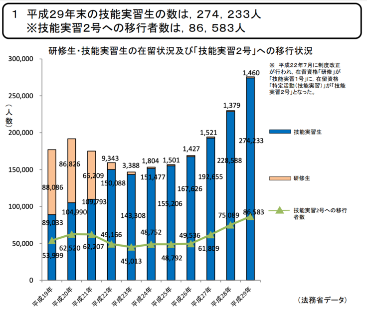 技能実習制度は、平成5年に創設された制度で国際貢献のため、開発途上国等の外国人を日本で一定期間(最長5年間)に限り受け入れ、OJTを通じて技能を 移転する制度とされています。技能実習制度の現状(平成31年2月18日 OTIT外国人技能実習機構 作成)