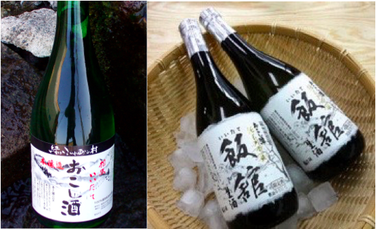 村でとれた美山錦を原料とする本醸造「おこし酒」をお送りします。