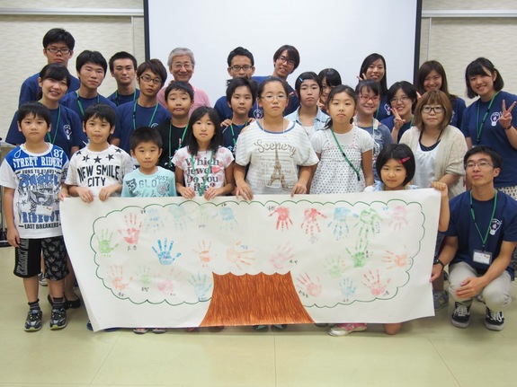 その後、大学生と子どもたちで手形アートを作成しました。