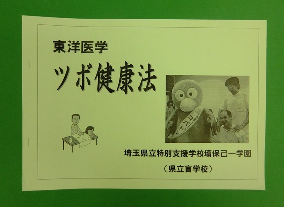 ⑥東洋医学ツボ健康法小冊子(A4横判13ページ 非売品 )本校専攻科が校外でのあんま・マッサージ・指圧などの実習を行う際に、お配りしている手作り小冊子で、これで、日々の疲れや体調不良を軽減していただけます。