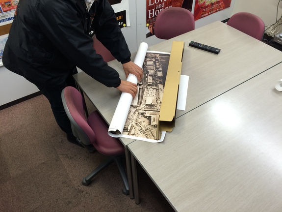 「築地市場の航空写真ポスター」の発送準備をすすめています。