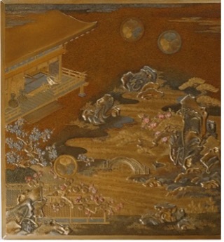 漆芸の代表的装飾に蒔絵がありますが、正倉院に末金鏤(まっきんる)という蒔絵の初期のものが伝わっています。