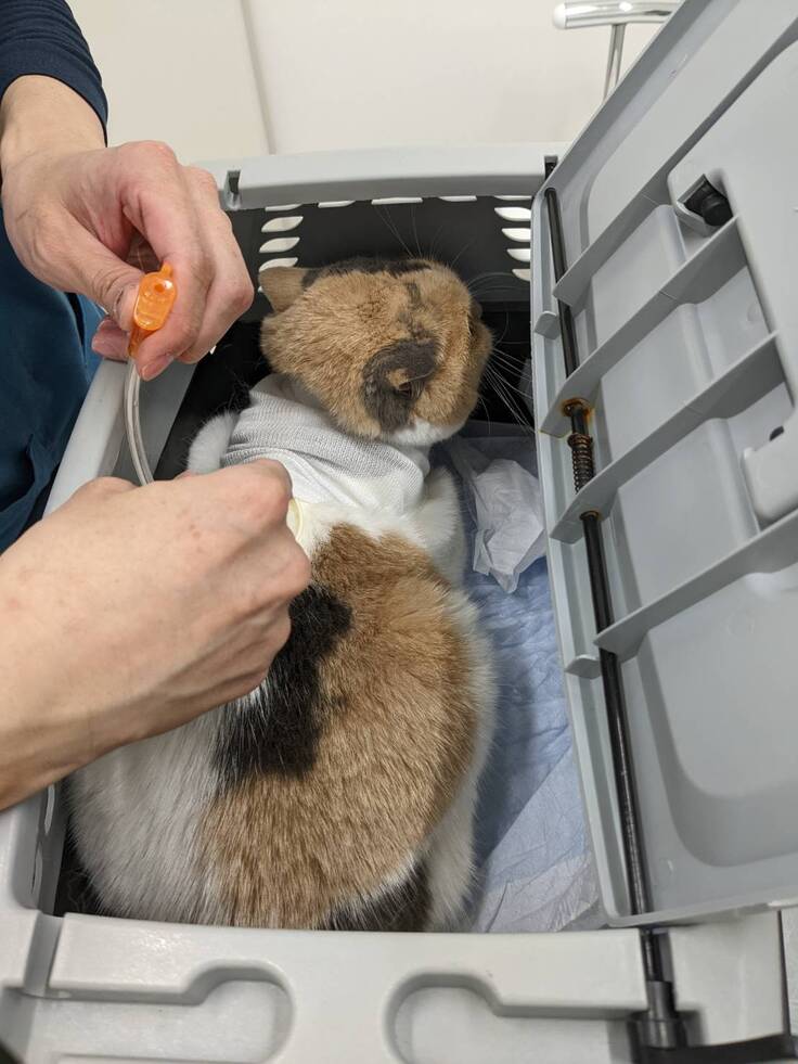 速やかにカテーテル処置して、ケアベテランボランティアのピュアさんに泣きついてお願いして5日が経ちます。