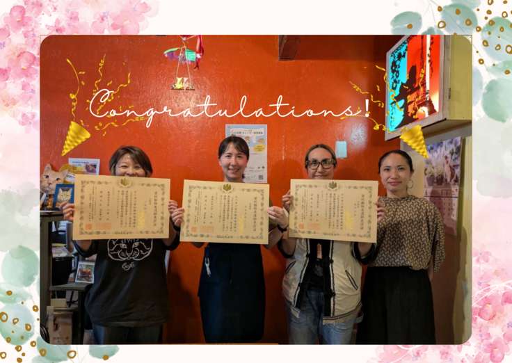 このたびツキネコ北海道のスタッフ3名が、愛玩動物看護師の国家資格を取得しました