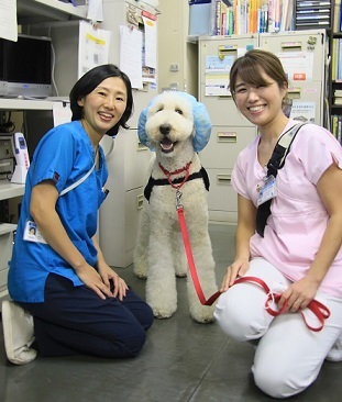 2019年2月から看護師のハンドラーさんと共に週2日、聖マリアンナ医科大学病院で勤務犬として活躍しています。