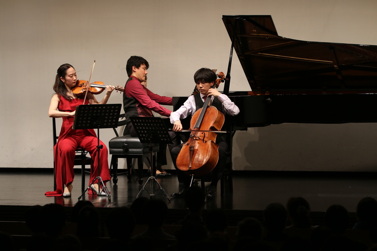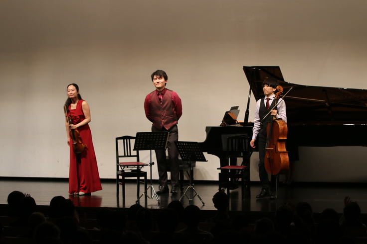 前回は、2018 年にミュンヘン国際音楽コンクールでピアノ三重奏部門日本人初優勝を果たし*、その後も着実に幅を広げている葵トリオをお招きし、「葵トリオー三人で奏でるシンフォニーー」と題した演奏会を開催しました。当日は、300名を超えるお客様にご来場いただきました。