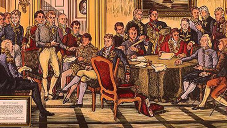 さて、ヨーロッパに戻ってこの時代を政治史的におさらいしましょう。1823年という年はフランス革命の勃発(1789年~)からナポレオン戦争の嵐が吹き荒れた一大動乱期(~1815年)のすぐ後にあたります。この間ほぼ全ての時期でベートーヴェンはウィーンに住んでおり、ウィーンは一時ナポレオンのフランス軍に占領されるなどの影響を受けました。1814年から15年までのウィーン会議で、ヨーロッパ各国の領土や政治体制はとにかくいったんできるだけフランス革命前の状態へ戻すことが決まっており、この頃はオーストリア帝国全体が宰相メッテルニヒの統治下で一応の安定を取り戻していました。