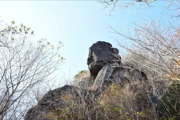 クイズの手掛かりは、巨礫の表面に隠されています!筑波山梅林に行って巨礫の表面を見てみましょう!この表面、筑波山山頂付近の「奇岩」とよく似ていませんか?巨礫は、筑波山山頂と同じ種類の岩石なのです!