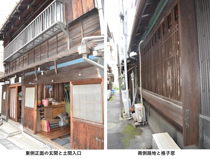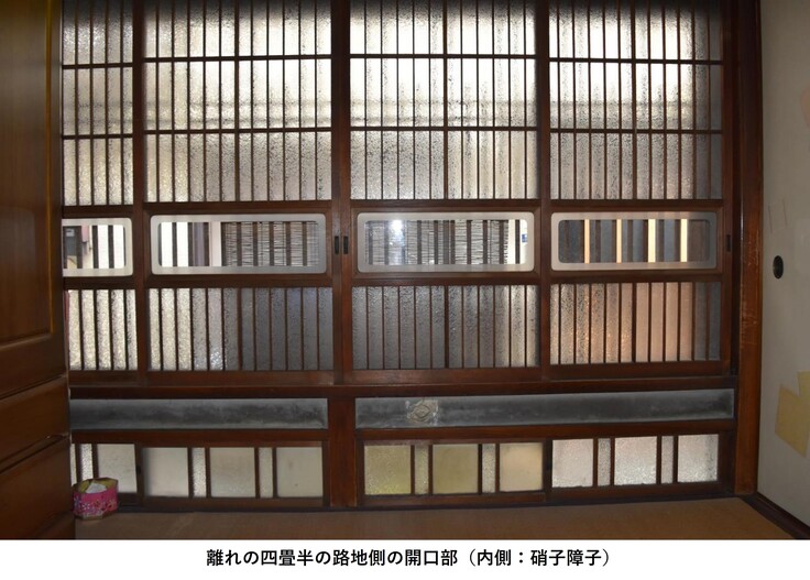 旧飯田家住宅もまた、南側の路地に面しては瀟洒な格子窓と硝子障子を用いてプライバシーを守りながら採光を確保し、北側路地の奥には、昭和初期に主屋裏に増築された「離れ」に設けられた台所と風呂に直接入れる勝手口を設けています。台所には天窓が設けられ床下収納を多用、2階には路地に面して物干場を配置するなど、漁師町らしい高密度居住のなかでの住まい方の工夫が随所にみられます。
