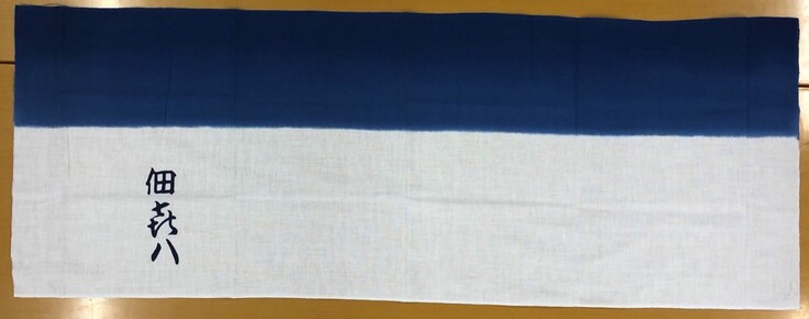 旧飯田家住宅の清掃時に発見された魚問屋の屋号(佃喜八)の手ぬぐいを、数量限定ですが返礼品にいたします。
