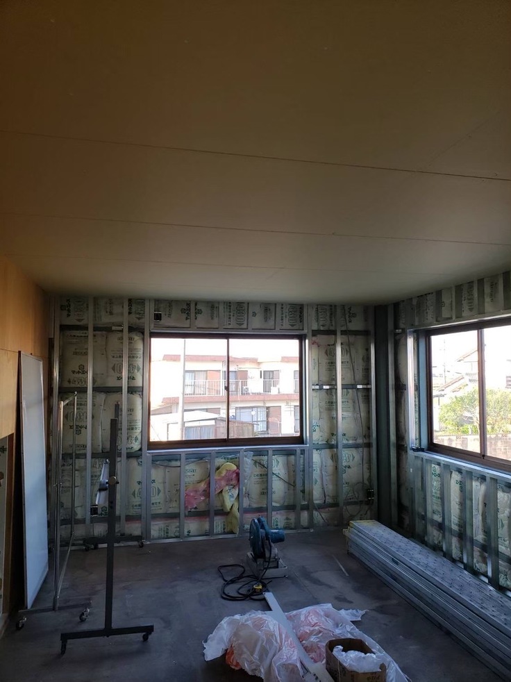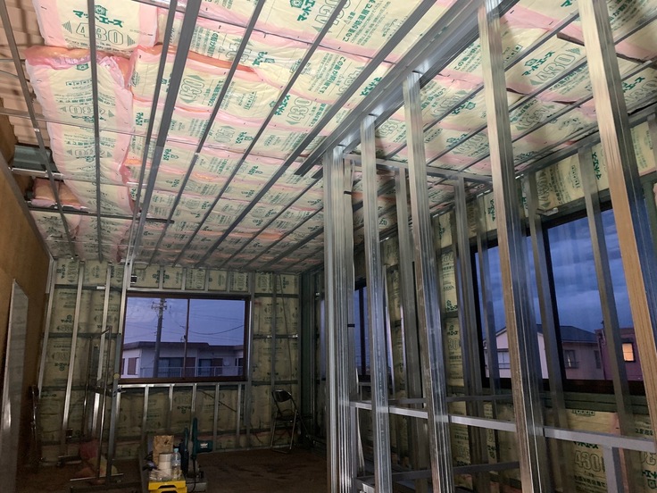 天井と壁に石膏ボードを貼るための下地が完成しました♪