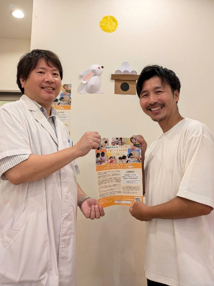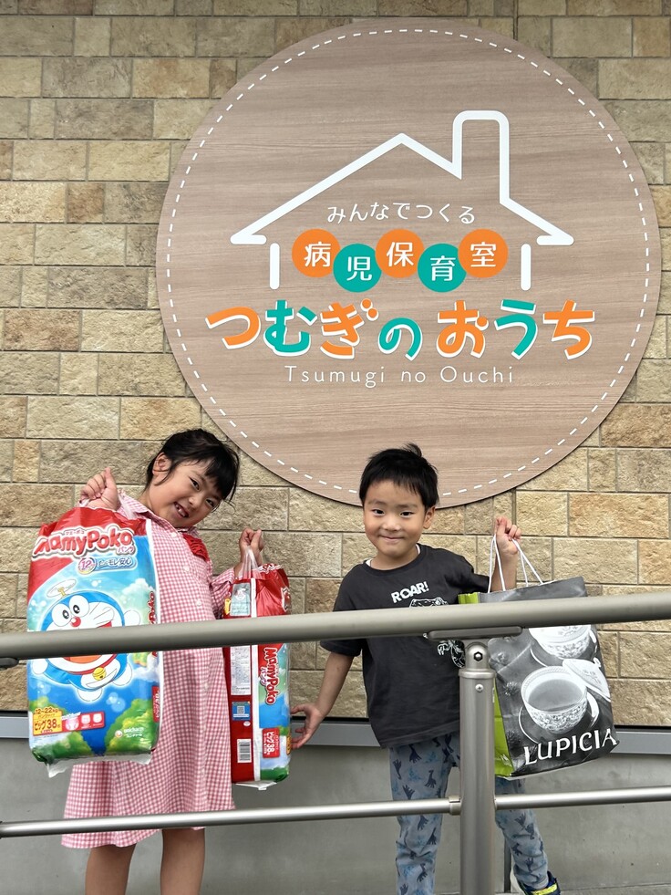 かわいい2人とお母様がご寄付のオムツと職員へのお菓子と一緒に、わざわざクラファンのチラシを受け取りに来てくださいました!