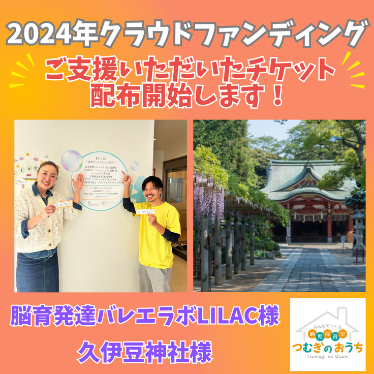 脳育発達バレエラボLiLac様・久伊豆神社様寄贈のチケット合計100枚分を無料配布し、みんなでつくる病児保育室つむぎのおうちの保育利用料(1000円分)としてお使いいただけます。