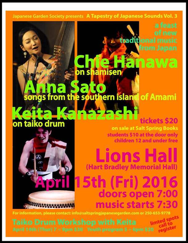 金刺敬大さん(和太鼓)、はなわちえさん(津軽三味線)、里アンナさん(奄美の島唄)が参加するカナダツアー「Tsumugu Project」
