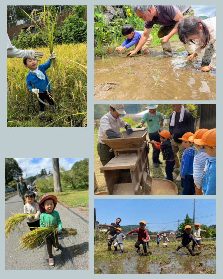 その後一本ずつ稲を植え、収穫は子どもたち自らが鎌で行います。