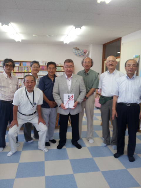 「女川に元気を送る会」の代表の皆さんが、東京などから女川の図書館にかけつけ、