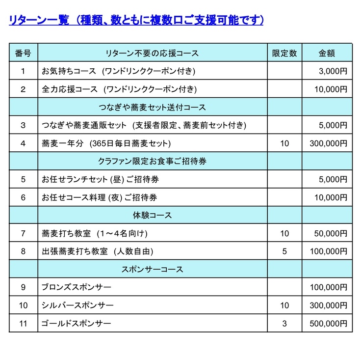 ※複数のコースにご支援、同じコースに複数口ご支援も可能です