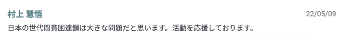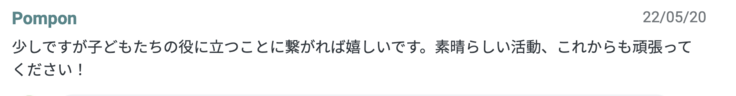他にもたくさんの応援コメントをいただいております。本当にありがとうございます。