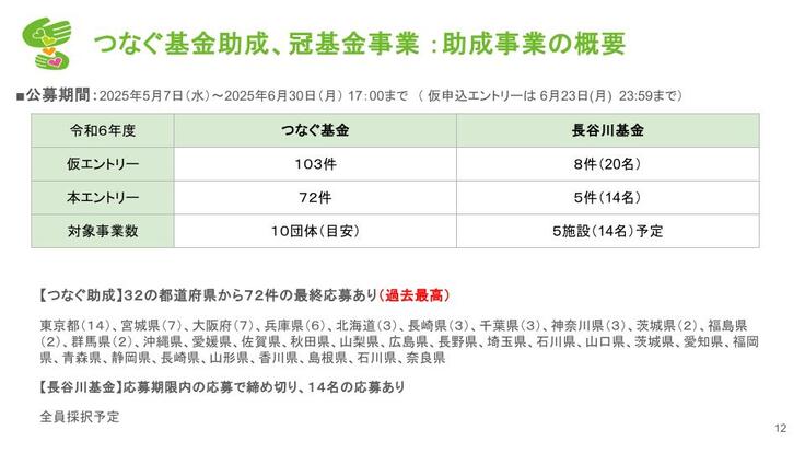 今年の助成事業は2025年5月7日(水)から2025年6月30日(月)まで公開募集を行い、全国32都道府県から100を超える団体様から応募がありました。