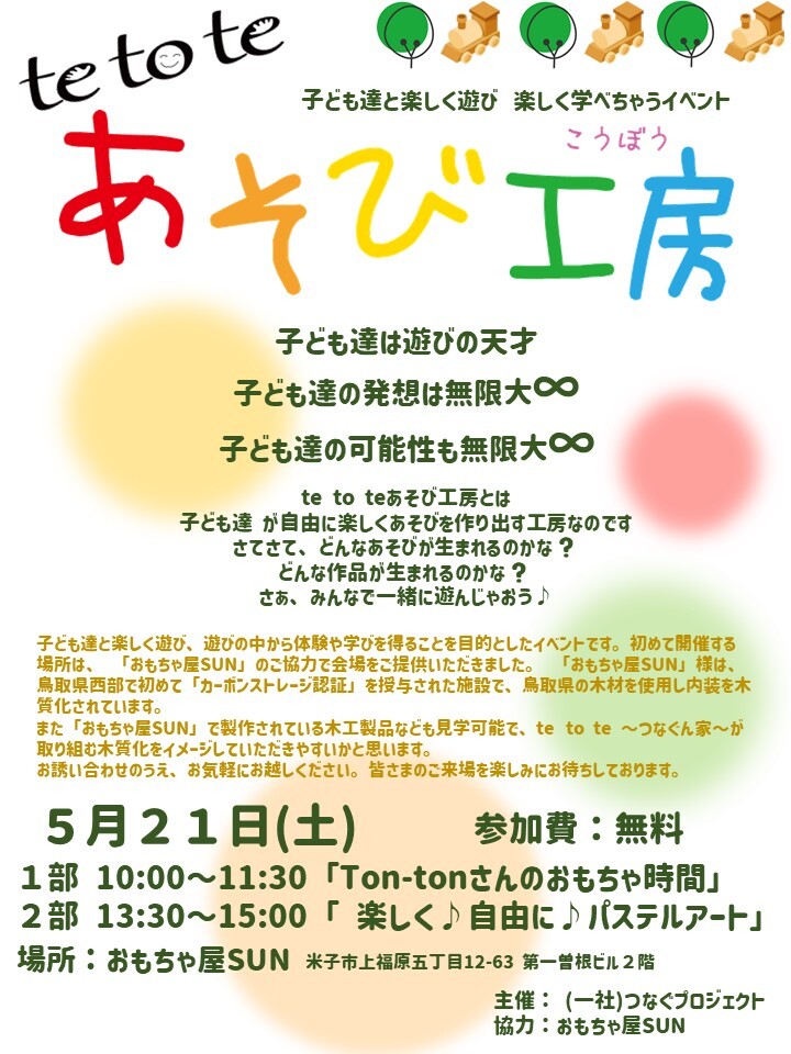 5月21日(土)開催するイベント『te to te あそび工房』。