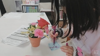 アレンジメントが早くかわいく完成した〇ちゃんは、コラージュの作成開始☆