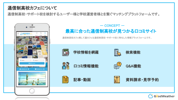 株式会社GoodWeatherが通信制高校の情報ポータルサイトを開発します。集まった資金は、サービスの追加費用として使用いたします。