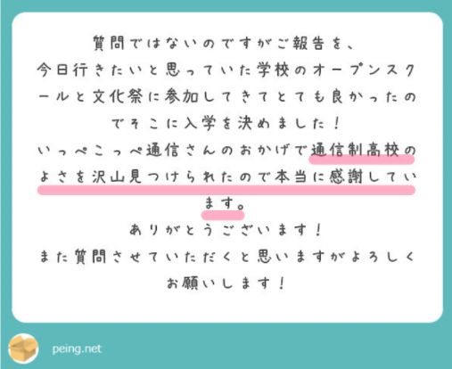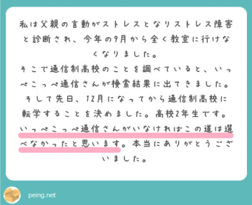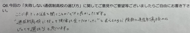 - 家の近くにある通信制高校1校からしか検討しなかった