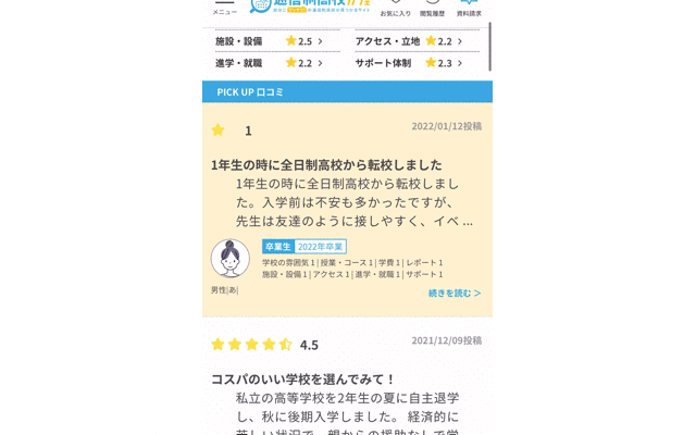 卒業生・在校生の生の口コミは学校情報選びをする上でもとても参考になります。年間1万件の口コミ投稿が目標です。