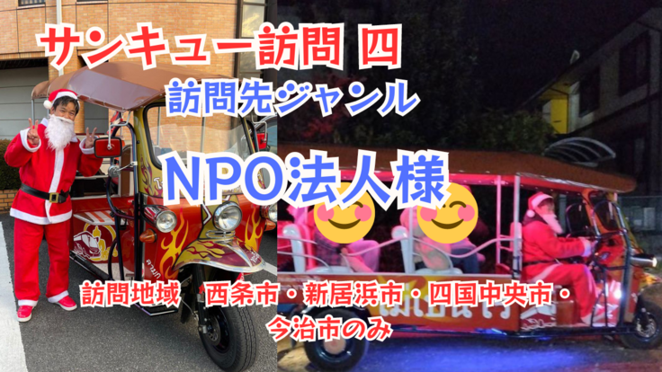 今年のクリスマス時期にサンタに扮した私が、トゥクトゥク乗ってご指定頂いた施設様や企業様に訪問するサービスをリターンにしています。