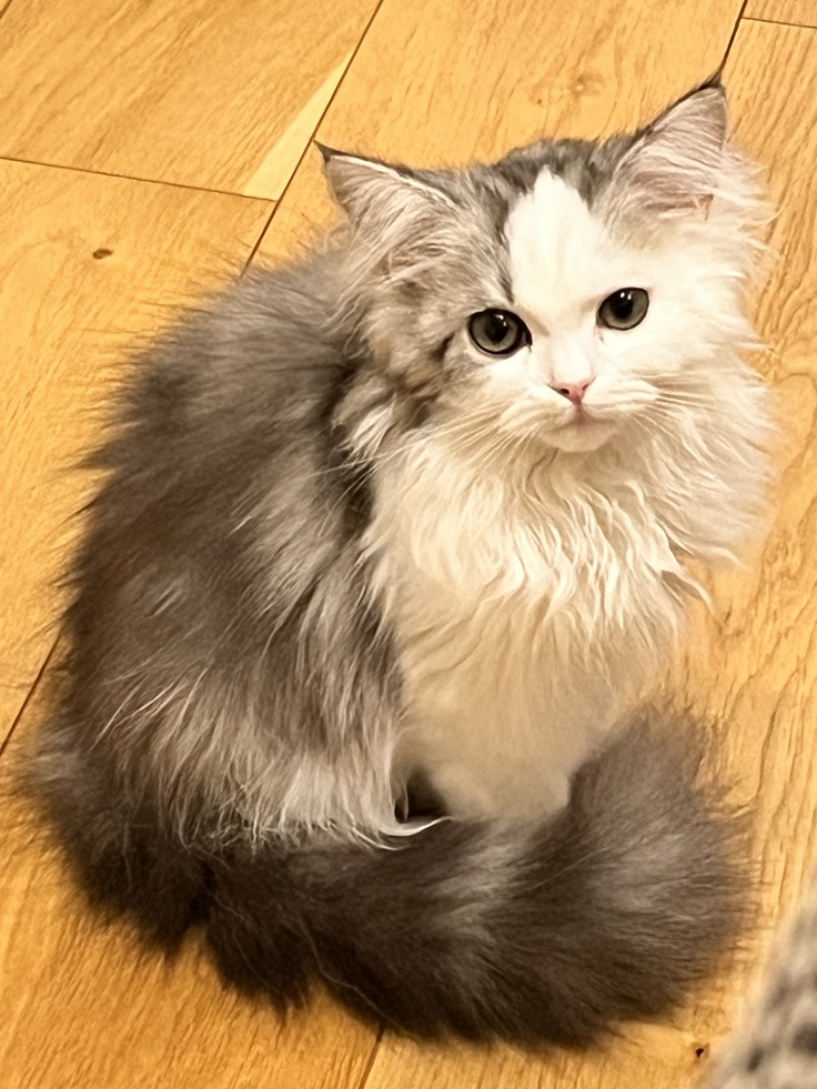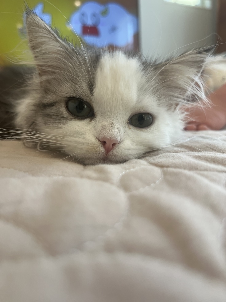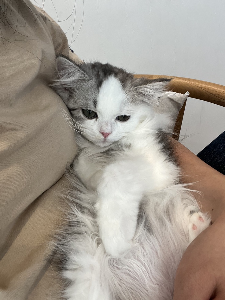 動物と暮らす経験もあり、子供達の希望で2025年6月にラガマフィンの男の子「ぽちゃ」を家族に迎えました。
