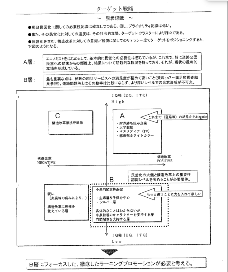 郵政民営化を狙う小泉政権は、このB層マーケティングを徹底し、