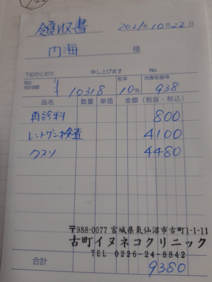 ※11月12日夕方5時頃クリニックの先生から直接電話が来ました。病理検査の結果は悪性だったとの事でした。治療方針はこれから考えましょうとのご報告だけでした。