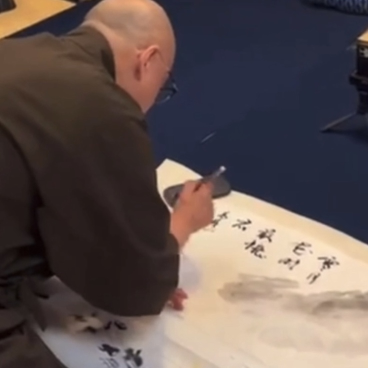 神護寺 谷内弘照 貫主 画賛揮毫中