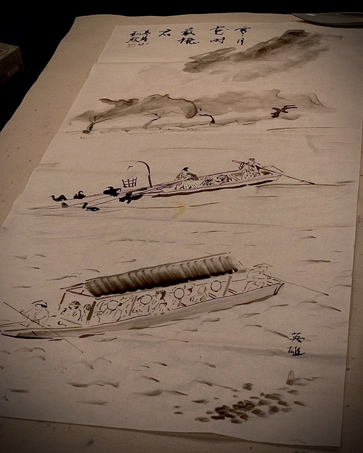 日本画家 戸倉 英雄 席筆『月守講遊舟図』