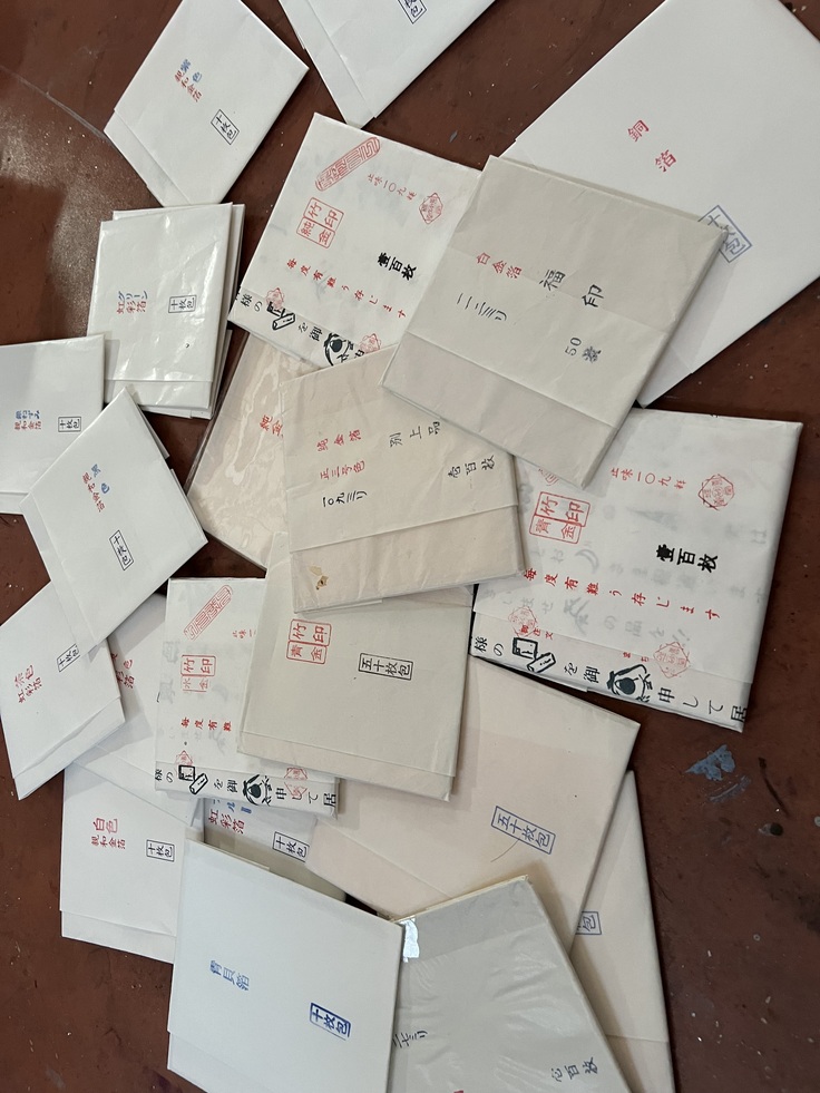 (私の学生時代は高級な群青色など他の岩絵具も含めるとさらに上乗せになる中で、まだ背伸びしながらも失敗分含めて箔を求めて本物の扱いに慣れた気がしています。これら高額画材に代用品も有りますが、不思議なことにこれでは何とも締まらないので、本物の使用を避ける訳にはいかないのと、使用画材が高騰したとて、市場も全盛期より落ち込む中で、絵の値段は簡単にあげれません。)