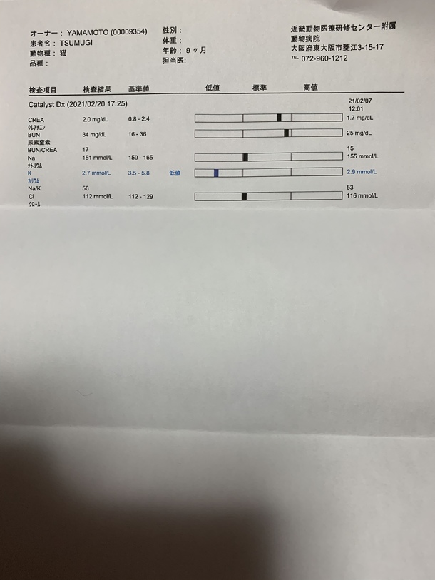 これ以上高くなったら危ないと言う事で、このまま平行をいく為に利尿薬を減らす事に。