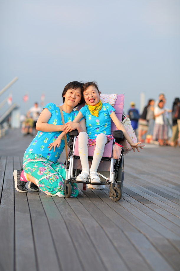 ももちゃんは酸素を使っていたり、吸引が必要だったり、車椅子移動だったり……外出するためにはたくさんの準備が必要。それでも"たのしいことがしたい!"という気持ちで今日も準備をしてきてくれました。