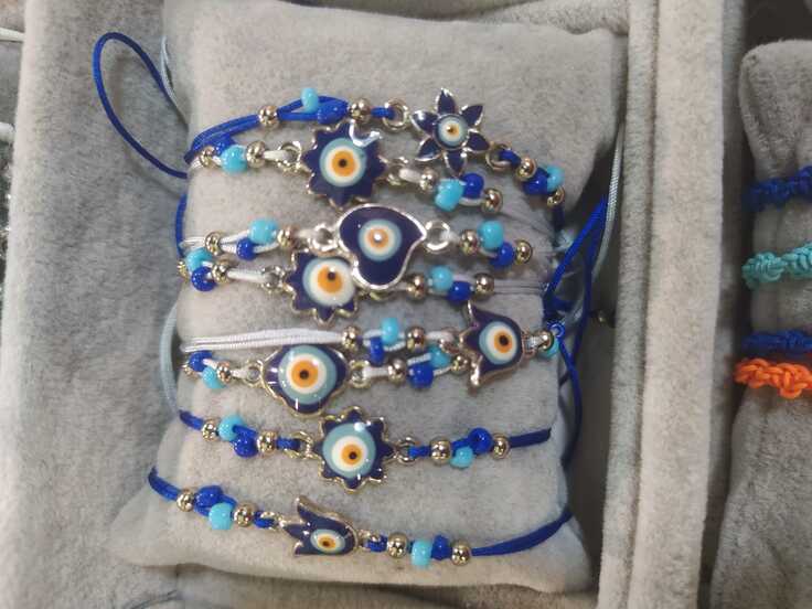 トルコや中近東では、嫉妬深い人から出る悪霊や妬みの眼差し(邪視)が災いの元凶とされ、こういった邪視を跳ね返すことで、自分に災いが来ないようになると信じられているとのこと。