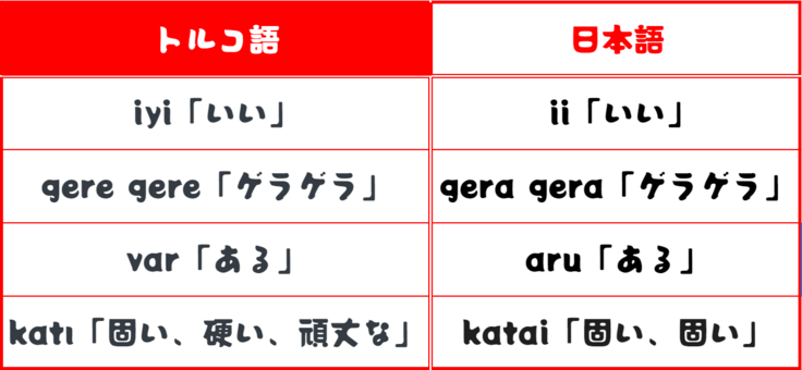 トルコ語と日本語はアルタイ・グループと呼ばれる同じ言語グループに属した兄弟語です。文法も似ており、似ている単語もたくさんあります。