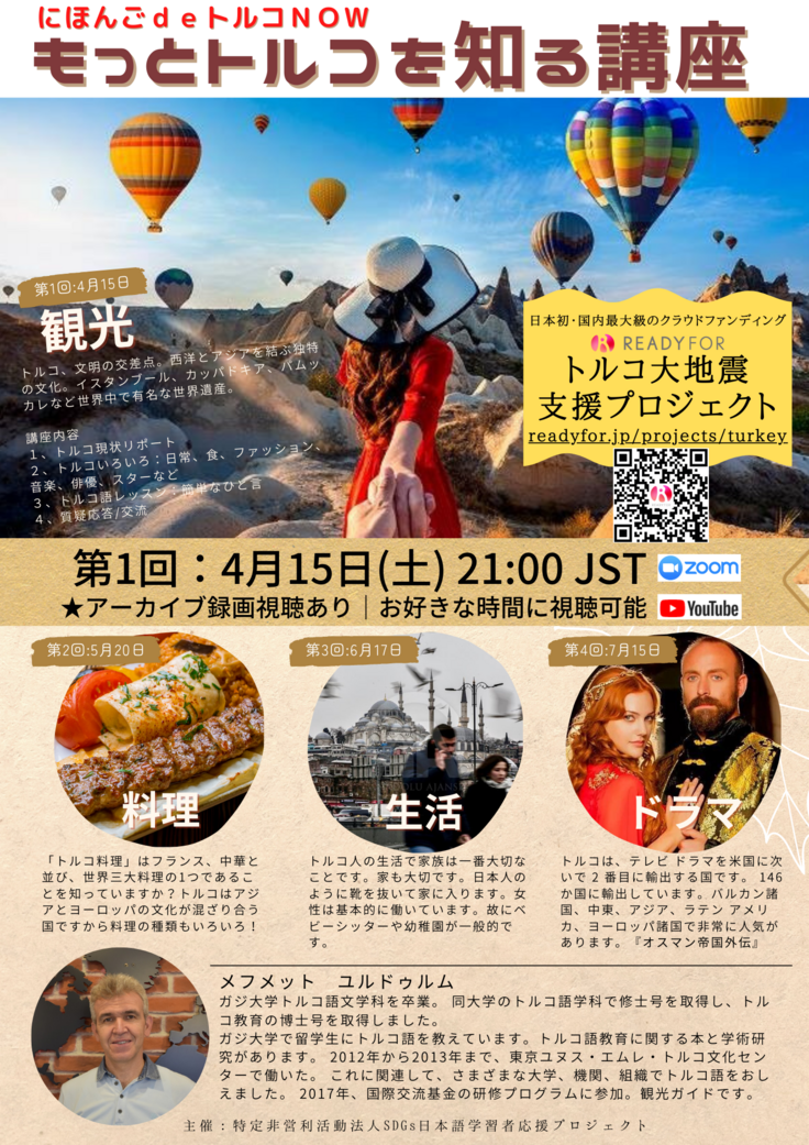 今回開催する「にほんご de トルコNOW ~もっとトルコを知ろう講座~」を通して、