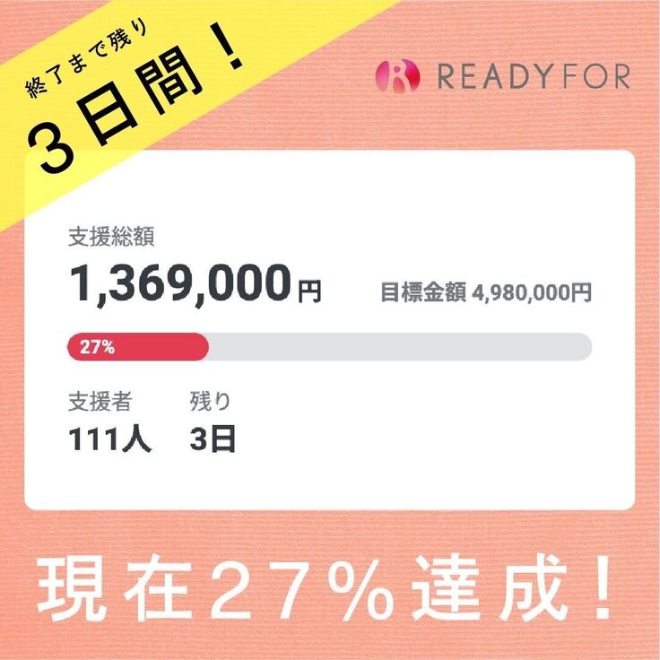 クラファン終了までいよいよ残り3日、ラストスパートです!